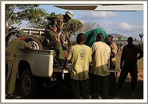 The sanctuary is situated 1½ hour’s drive from our Voi rehabilitation unit and the men wasted no time getting to the site with much needed milk formula and some daylight in hand.