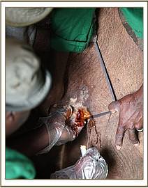 The calf was now injured and paralyzed by fear, so the team members (themselves pretty shaken) were able to restrain her quite easily having ensured the encircling lions were now a safe distance away.