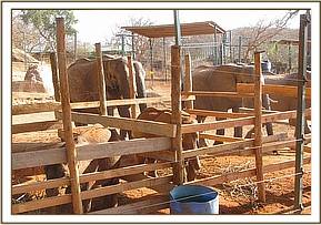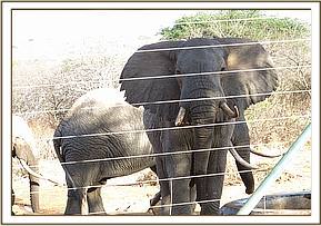 On arrival the Keeper Dependent Orphans’ Matriarch, Loijuk, lavished boundless love and attention on the newcomer who calmed down instantly, and soon the new orphan had settled down and even accepted milk and water from the Keepers all the while watched by an interested group of visiting wild elephant bulls who had turned up to drink at the Stockade water trough. Later on the Senior Independent Ex Orphans arrived to welcome the newcomer into the fold, all crowding around, rumbling and laying trunks lovingly across her back. A make shift stockade was hastily built so that the calf could tame down adequately before being able to join the other orphans. It was important that she became totally comfortable feeding from the keepers first, so that once she did join the Ithumba orphans, free from the confines of the stockades, she would have enough confidence to take her bottle from the Keepers during feed time along with the others.