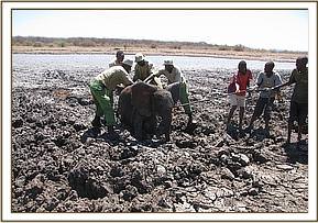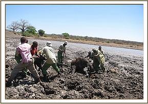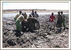 The calf had obviously become stuck in the black cotton mud during the night, since it had not been there when Benjamin deposited another load of rocks the previous day.