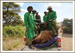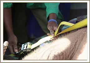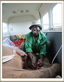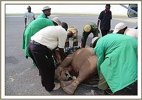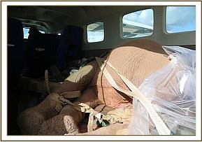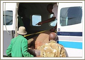 Before being transferred into the plane, Jasiri was given all the necessary medications he needed for the journey as well as an injection of Stresnil to keep him calm and as relaxed as possible. Again with teamwork Jasiri’s bulk was shifted slowly into the plane and the Keepers secured him in place with straps before putting him on a drip, as it was obvious that, even though he was in relatively good health considering his ordeal, he was clearly extremely dehydrated.