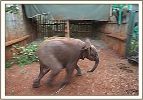 Departing Amboseli at 4pm, the flight went smoothly, two of the Keepers sitting with Jasiri in the back of the plane, keeping the drip in place and keeping the scared orphan company, giving him care and reassurance. After forty-five minutes the aircraft soon dropped low over Nairobi before landing at Wilson airport, where the SWT driver and vehicle were waiting. Jasiri had remained calm and quiet throughout the journey and was now on his way to Nairobi National Park and the SWT Nursery.