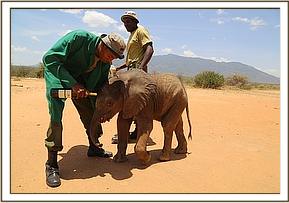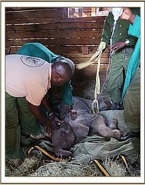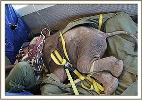 When the attempt to reunite the orphan with his mother and herd failed the SWT were contacted to mobilise a rescue. By the time the rescue plane landed at the Namunyak airfield, the calf had not yet arrived, so the plane and Keepers waited for his arrival which did not take long. Once fed he was then loaded onto the plane with his legs tied to ensure he was secure for air travel, the bull calf was then given intravenous life support to avoid plummeting glucose levels, which usually happens under such stressful circumstances and can prove life-threatening.