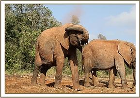 Jotto spraying water with his trunk