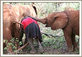 When she was returned to her stable in the evening, she was again very disturbed and unable to settle, so orphan “Turkwel” was brought in to share the stable with her, and immediately she calmed down again. She was given homeopathic gut stabilizing remedies since the consistency of the stools was becoming loose, but she slept well, took her milk on cue, and seemed fine in the morning. We are very hopeful that little “Kainuk” – the l8th member of our Nursery herd – will continue to thrive, and be afforded a second chance of life – a very lucky little elephant who shares her origin with another two Trust orphans – “Turkwel” (now 2 years old) and “Nasalot” who is now 11 years old, Keeper Independent and possibly pregnant, leading a normal wild elephant life in Northern Tsavo East National Park along with another 28 orphans who are also now integrated into the wild elephant community of that area of the Park. Tsavo is a Protected Area that offers elephants the space they need for a quality of life when grown, and for this reason it becomes the home of all the Trust’s orphaned elephants in the fullness of time.