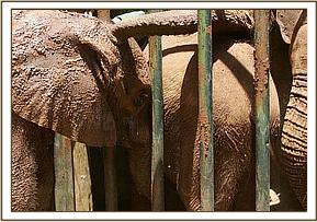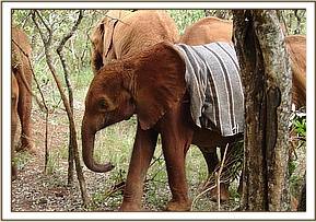 Having completed their business in the nearby town of Mtito Andei, they returned to capture the orphan, who was still in the same place and who did not put up much of a struggle. His legs were bound, and he was transported to the nearest airfield at the Kamboyo Park Headquarters of Tsavo West National Park, where he was secured to a tree in a standing position, to await the arrival of the rescue plane on its way from Nairobi and cooled down with wet mud.
