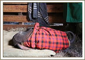 We called this calf Kamok, a name taken from Ol Pejeta Ranch. Given that her umbilical cord remained soft and fresh, and the pads on her feet where clean and hardly used and her ears petal pink we took the precaution of assuming this calf had never received her mother's colostrum and transfused plasma from a full grown healthy elephant into her tiny body to ensure she had some natural antibodies. This happened while she slept on a mattress, covered in a blanket, exhausted from her ordeal. On waking she took to her milk bottle immediately and followed trustingly all those around her. Very soon she latched onto her Keepers and security blanket that all infant baby elephants seem to love and get so much comfort from just like human babies. Her wobbly joints have thankfully grown stronger over time and she is now able to walk long distances following her Keepers.