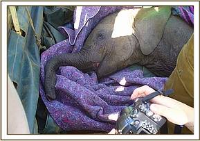 The calf was captured at noon by Edwin of the Bill Woodley Mt. Kenya Trust, Kenya Wildlife Service Rangers and members of the community, and driven in a Pickup to the Nanyuki airstrip, a journey that took about one hour. It was then flown to the Sheldrick Wildlife Trust's Elephant Nursery in Nairobi, there to become the 9th elephant calf currently in residence at the Nursery.