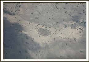 Below maasai manyattas are seen scattered below in a barren landscape.jpg