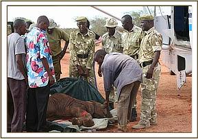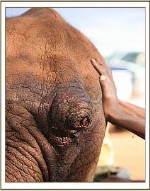 He was flown to the Nairobi Nursery from the Kilaguni Lodge airfield in Tsavo West National Park, and has been named “Kilaguni” since the Chyulu Gate is not far from the Lodge. He arrived in the Nursery just after dark on the 22nd, and by torchlight we were able to assess the extent of his wounds.