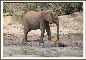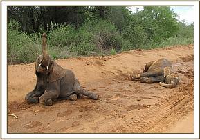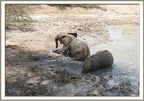 Kilaguni & Sabachi enjoying a cooling mudbath