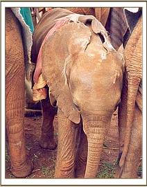 She was airlifted to our Nairobi Nursery and in time one ear was so sun damaged that it became like parchment and despite our best efforts to heal it, the top finally died and fell away completely. Due to her sun-damaged ears, Kinna has always been very distinctive and easily recognisable even amidst the wild herds when grown.