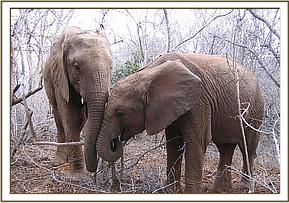 Mulika scratching against Kinna
