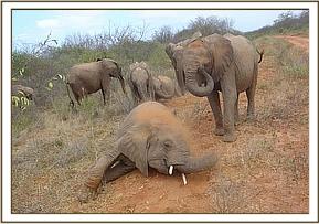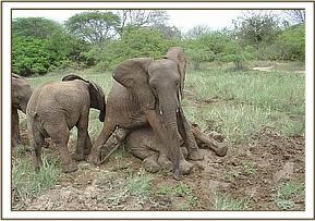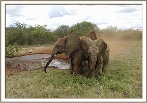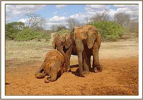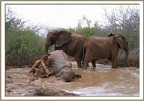 Mulika, Yatta & Kinna wallowing in rain water