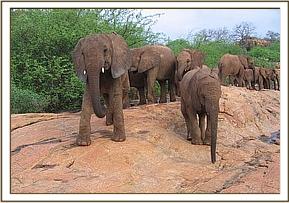 Kinna & Galana lead the orphans to cross a rock
