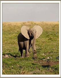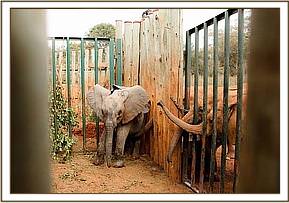 /,p/.The team was met at the Amboseli strip and transported to where the calf was close the swamp. Although visibly emaciated, the calf was easily restrained and captured by the Trust’s Keepers, and put up little resistance. After a short journey back to the airstrip, just as daylight faded, they took off for the forty five minute return flight to Nairobi. Covered with a blanket and strapped down in the plane she remained motionless throughout the flight, with our Keepers close at hand. One can only imagine how frightening the whole experience must have been for her. On arrival at Wilson airport in Nairobi she was driven to the Trust Nursery, arriving after dark at about 8 p.m.