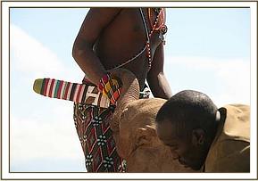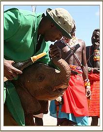 Because of the heavy rain storm, there was actually no need for the local tribesmen to visit the wells in the Milgis Lugga for there was rain water everywhere. However, very fortunately, one man just happened to be passing by, and heard the bellows of the baby elephant down one of the wells. Upon inspection it was obvious that her elephant mother had desperately tried to extract the baby, for she had dug all round the sides of the well with her tusks, but the ground was hard, and the well deep, so in the end she had accepted defeat and been forced to leave her precious baby to a slow and lingering death. One can just imagine the agony of that decision, and the grief that mother felt on that fateful day.