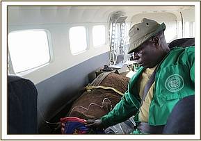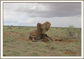 Upon arrival it seemed likely that the calf’s mother had succumbed to the effects of the past brutal dry season and was dying of starvation for she was barely breathing and too far gone to get to her feet and retrieve, her emaciated calf, of approximately l0 months old, bravely standing by her side protecting her. The calf was still feisty, although thin, for she too had clearly suffered the effects of the drought, having been deprived of her mother’s milk. The Rescue Team worked hard to try and save the collapsed mother, but sadly she slipped away, so their attention then turned to capturing the young calf. This was accomplished swiftly after which she was restrained and placed in the back of a Landcruiser and brought safely back to the Voi stockades to await the arrival of a rescue aircraft from Nairobi to ferry the baby to the SWT Nairobi Nursery.