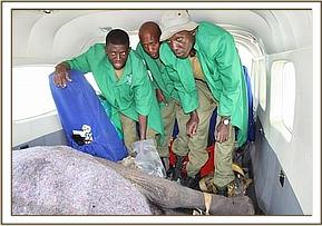 A team of Sheldrick Wildlife Trust Keepers were immediately flown from Nairobi to the Mara to assist with the rescue, and together with the KWS/Sheldrick Wildlife Trust Mobile veterinary unit, the visitors who so kindly kept vigil over this elephant calf ensuring his safe rescue, and the Narok County Council rangers, his was brought to safety.