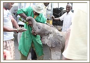Officials from the Amboseli Trust for Elephants (ATE) soon arrived at the scene and were assisted by community members in extracting the calf. The orphan was then loaded into a vehicle and driven to the Amboseli Park airstrip, from where it was met by the SWT rescue team and soon airlifted to the Nairobi Nursery. The calf, a beautiful baby bull who was about 3 months of age on arrival, arrived at the Nursery by 5pm and has since been named “Lemoyian”. We feel for the mother elephant who is obviously grief-stricken having lost her calf, and we are incredibly saddened that this orphan could not have been reunited with his family. Since the well is very close to an international border, and the mother could well have crossed into Tanzania, it was not an option for the rescuers to attempt to reunite the family.