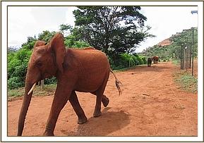 Lesanju walking towards the stockade