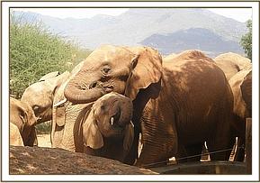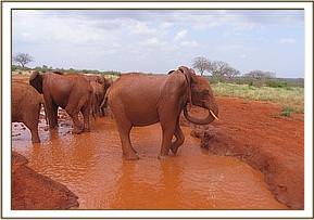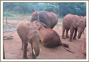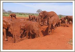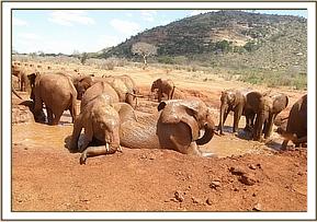Kenia and Lesanju's herd enjoying mud bath