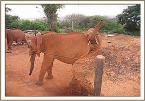 Emily and Lesanju's herd by the stockades
