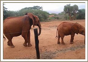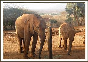 Lesanju, left, and her herd in the stockade