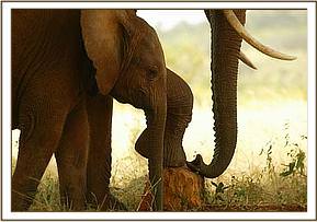 On the 22nd November 2002, Lissa returned to the base of Mzinga Hill in the vicinity of the Stockades, along with a large herd of about 50 wild elephants, all in a great state of excitement. Sensing that something unusual was about to happen, some of the Keepers climbed onto a huge rock, and from this vantage point, they could see Lissa in the midst of the wild group, obviously in labour, lying down and getting up at intervals. After a while, the baby was born as she was in a squatting position, and amazingly, a huge bull barged through the attendant cows, and immediately mated poor Lissa. (Apparently, the hormones released when a birth is imminent, and during the birthing process, closely resemble those of a cow in estrous. In a natural elephant family, the cow about to give birth would leave with a few close adult female relatives to seek a secluded spot, protected by her adult female family).