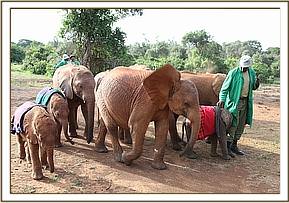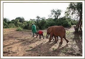 The tiny elephant arrived at the Nursery at 2.30 p.m. He was in good condition, sturdy and strong, the hind-side of his ears still petal pink, but the umbilicus already dry so he is estimated to be 3 weeks old, since the hind-side of the ears turn dark at 6 weeks. He has been named Lorian and he brings the number in our Nairobi Elephant Nursery to 21 joining tiny Barsilinga, Balguda and Kithaka as baby bull Nursery miniatures, part of a new and adoring Orphaned Elephant family.