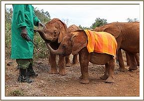 Tagwa, Tamiyoi, Jotto and Malkia with blankets