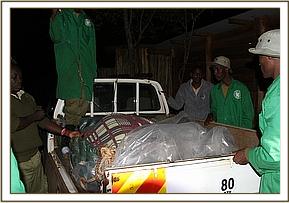 The plane touched down at Wilson at 7pm just before it became completely dark and the baby elephant was transferred onto the waiting SWT pickup for the short journey back to the Nursery. Unfortunately rush hour traffic and ongoing road works conspired to make what should have been a quick 15 minute journey into a 1 hour 15 minute slog. The keepers were masterful at restraining the excitement emanating from surrounding vehicles, the passengers of which were agog at the sight of an elephant, albeit a baby, on the back of a pick-up. Finally, at 8.30pm, everyone arrived home safe and sound.