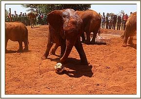 Mbegu playing in the sand with football