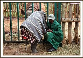 By mid-morning on the 5th July 2011, little “Mumbushi” was safely back at the Nairobi Nursery. He takes his name from the ”swampy area” near the Hombe river where he was found, “Mumbushi” meaning “Swampy area”. Desperately hungry, and exhausted, apparently having cried all the previous night at the Senior Warden’s home, he was administered the routine prophylactic antibiotic to guard against pneumonia, had his machete wound anointed with green clay and was given rehydrants and milk.