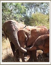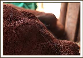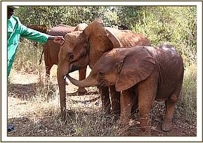 The day after her rescue, Murera collapsed and had to be put on life support. This gave us a chance to take a closer look at the extent of her injuries and clean out her wounds. For a long time, she couldn’t put any weight on her hind legs. All the Nursery orphans would crowd around her stable, giving her rumbles of love and encouragement.