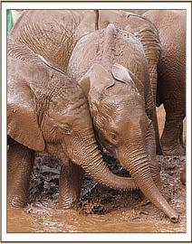A day later and he was out with the nursery herd, all 14 of them now. On his first noon visiting time, he climbed into the mud bath with the others, and was one of the first rushing to his milk bottle, in the rhythm of the nursery routine already. Having been without his herd and mother for so long he now relished the company of both human and fellow orphans.