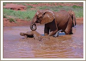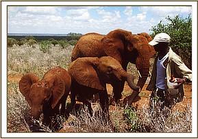 Other than the apparently superficial wounds on her body, the calf looked healthy and strong, and she settled down well under the attentive care of Malaika. We already had another elephant rescued from the same hole on the 22nd of June 2001 called Maungu, and Ndara from day one struck up a very close friendship with Maungu having had a similar fate. These two grew up together firm friends. Sadly Maungu died a number of year later from a clotted mass in her heart, caused we think from the injuries she sustained when she fell into this manhole years before. Later too Malaika died in childbirth so Ndara has known her fair share of heartbreak.
