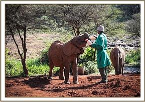 Ndiwa having her 9am bottle