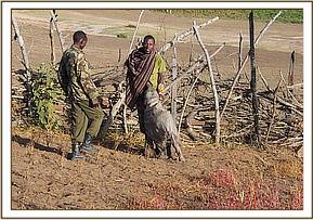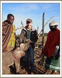 This tiny baby was born that day as the Samburu herdsmen came across the fetal matter. The elephants had by this time scattered and were nowhere to be seen when the shocked tribesmen found a baby elephant amidst his flock. They guided the baby back to the safety of their Samburu ‘boma’ (homestead) on the evening of Tuesday 5th August. The calf’s umbilical cord was still fresh, his ears still pink and his weak legs still learning how to walk, yet without his mother to guide him he merely followed what he thought was his family, too young to know any different.