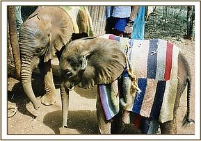 This tiny calf fell into a deep trench as his family were running for their lives and there he was left for dead by the fleeing herd. He was found a day later by herdsmen, sunburnt, confused and very dehydrated. They took him to the nearby Maralal Safari Lodge, where he was kept for the next week, being fed on cows’ milk and grated carrots, which, of course, did him no good at all. Finally, when he looked as though he was going to die, the manager (who, nevertheless, had done his best) brought him to us, having heard that Daphne knew something about elephant orphans.