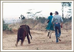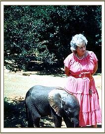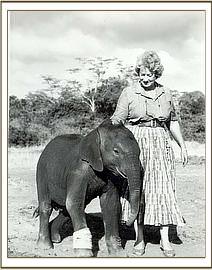 The baby was in a pitiful state, suffering from serious diarrheoa (due to the incorrect diet) extremely sun damaged ears and a very septic umbilicus oozing pus. Meanwhile, we tried hard to persuade Olmeg to spend his nights in a small stone chicken house (minus the chickens!), with just one of Daphne’s dresses, bearing her scent to represent that vital human presence, but he was having none of it, and the midnight walks around the yard continued, loud protests punctuating the night about the new sleeping arrangement. Unhappily, our Ranger Assistant didn’t work out either, for he lacked the empathy needed, and Olmeg hated him with a passion, refusing even to accept milk from him. Hence, the new Elephant Keeper had to be returned with thanks and we then set about recruiting our own, and, of course, more than just one, so that the men could have time off. Gradually, they took over the Orphan duties, and Daphne and Jill could not only catch up on lost sleep, but also turn their attention to the many other duties that had been sadly neglected!