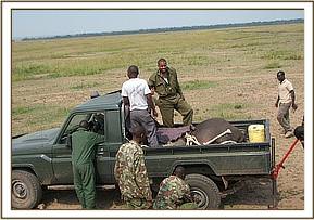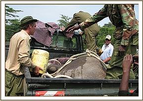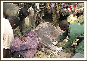 Once the drug worked, he was easily overpowered and driven to the nearby airfield, where the rescue plane was already waiting. However, by this time, the elephant was beginning to revive, but having had his legs bound, he was powerless and loaded onto the plane for the flight to Nairobi.