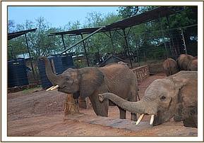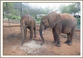 Siangiki left and Olsekki enjoying pellets