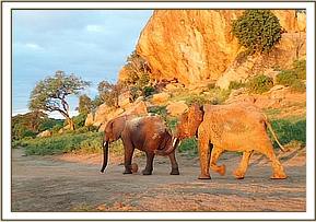 Olsekki & Barsilinga walking towards the buffalo