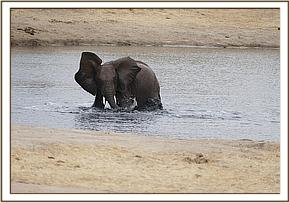 Olsekki playing in the water