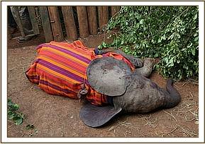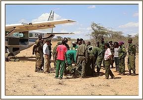 By morning any evidence of elephants had vanished, only the screams of the desperate baby alerted the community. Due to sensitisation throughout the region these orphans are often reported and timely solutions sought for them. The community conservation scouts extracted the calf and he was kept safe until the SWT could send a rescue plane to fly him to the Nursery.