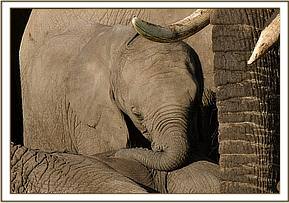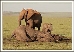 The next day the tragedy unfolded and the same visitor found a very different scenario with the baby confused by her dead mother's side, but in the company of the rest of the herd, trying to come to terms with it all. The little calf was then whisked away by the rest of the herd but not before she had said her painful goodbyes to her lifeless mother. As a milk dependent baby she would have little hope of survival without being rescued as a lactating mother in the herd would never have enough milk to satiate two calves.