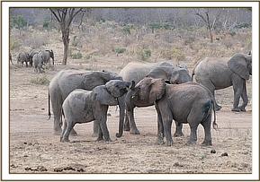 Esampu, Roi, Garzi and Sana Sana having a mud bath.