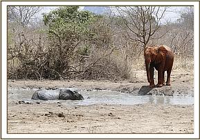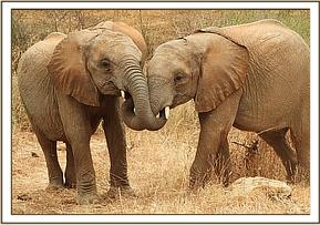 Roi and Esampu enjoying a dust bath on the side of the road.