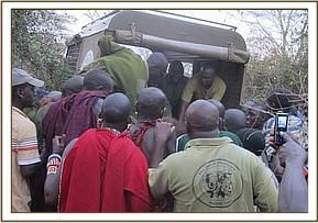 Our SWT/KWS Ziwani Anti-Poaching Team and some of the Voi Elephant Keepers found and rescued the calf during the afternoon of the 27th August 2011, after which he was driven to the Voi Stockades for the night, comforted by the presence of the Keeper Dependent babies based there.